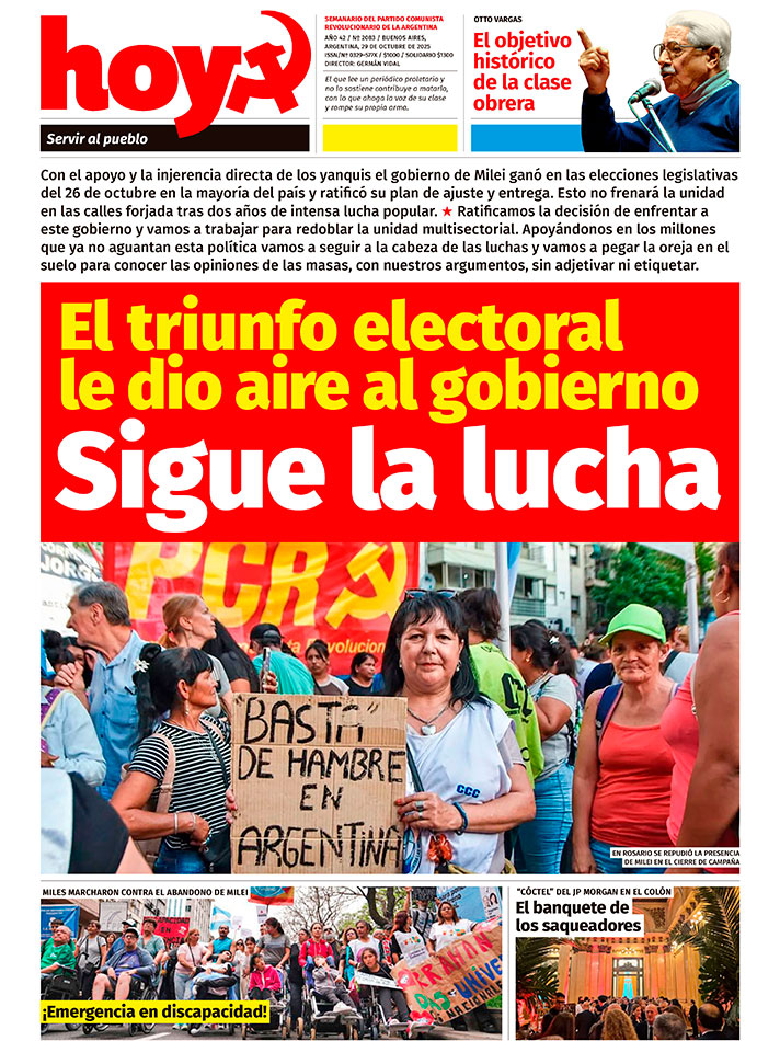 Quedó demostrada la importancia que le dio el gobierno yanqui a sostener a Milei en momentos que viene a la ofensiva por el control de nuestro país y todo nuestro continente, desplegando tropas en el Mar Caribe amenazando a los gobiernos de Venezuela y Colombia. En esto se inscribe también la horrorosa masacre en las favelas de Río de Janeiro impulsada por el gobernador bolsonarista. Todo con la excusa de atacar el narcotráfico.