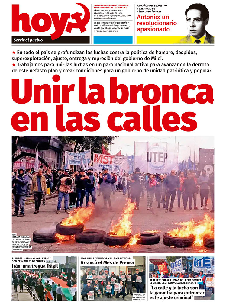 Decenas de luchas recorren la Argentina. Como venimos sosteniendo, la tarea central es trabajar para la más amplia unidad de esas luchas, para derrotar esta política antiobrera y antipopular, abriendo caminos para un gobierno de unidad popular, patriótico y democrático.