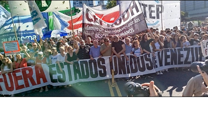 A las pocas horas del criminal ataque del imperialismo yanqui a la hermana República Bolivariana de Venezuela se desplegó una oleada de indignación en nuestro país, que se expresó en múltiples pronunciamientos y en actos y marchas desde el mismo sábado 3 de enero.