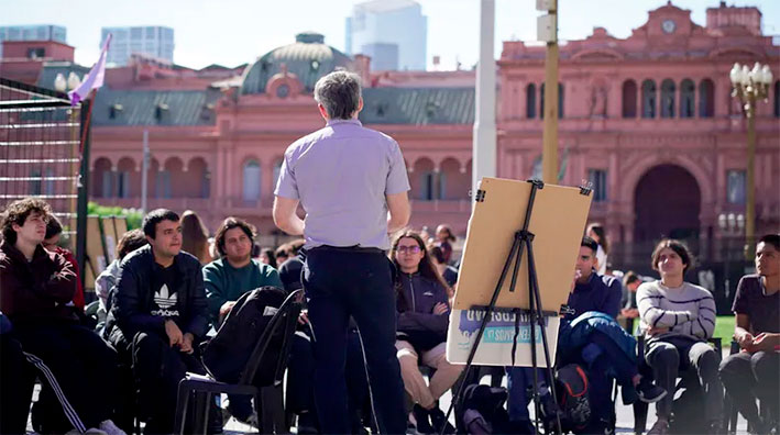 En Plaza de Mayo confluyeron docentes, investigadores y estudiantes de la UBA y el Conicet en masivas clases públicas y charlas, para exigirle al gobierno de Milei que cumpla la Ley de Financiamiento Universitario, que el Poder Ejecutivo mantiene congelada a pesar de haber sido ratificada tanto en el Congreso como por la Justicia Federal.
