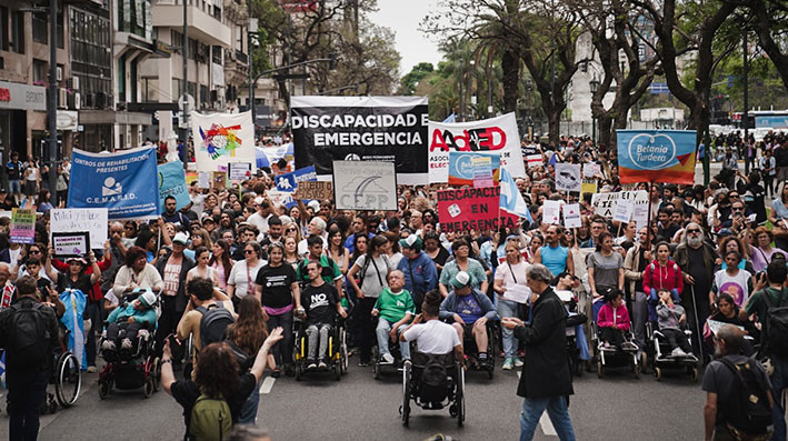 Frente al Ministerio de Salud, en un acto, los organizadores leyeron un comunicado que expresa “No aplicar la Ley de Emergencia es incumplimiento de los deberes de funcionario público y una violación de la división de poderes establecida en la Constitución Nacional. Advertimos al presidente Javier Milei, al ministro Mario Lugones y al interventor Alejandro Vilches que garanticen los derechos de las personas con discapacidad, cumplan la ley y respondan a la crisis terminal que atraviesa el sector”.