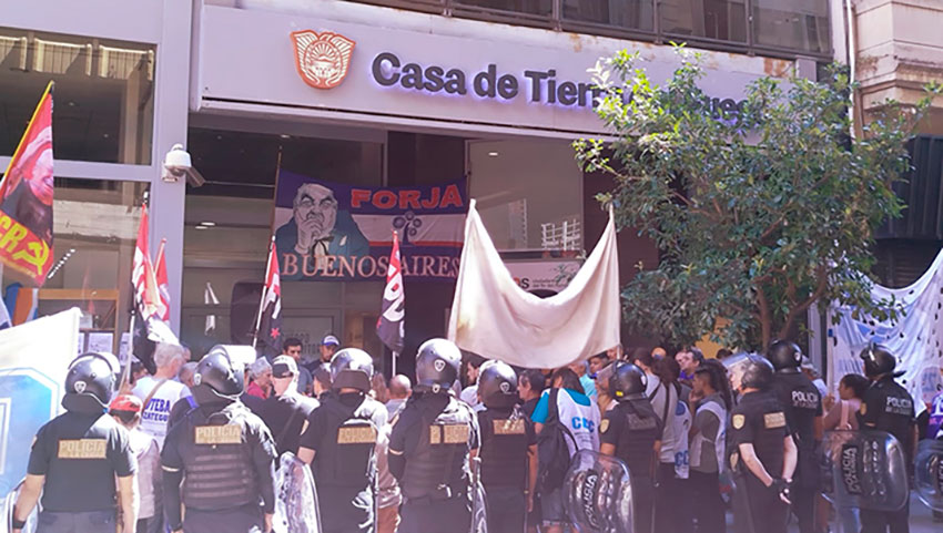 Un acto de defensa de la soberanía frente a la ocupación de las instalaciones del Puerto de Ushuaia por efectivos de la Prefectura Naval Argentina -en coincidencia con las pretensiones del imperialismo yanqui de tener una base militar en esa zona- que reviste una gravedad particular por el carácter estratégico del puerto de Ushuaia en relación con el Atlántico Sur, las Islas Malvinas, que forman parte de la provincia de Tierra del Fuego, y su proyección hacia la Antártida Argentina.