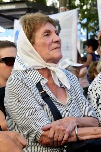 Fue allí donde surgió el símbolo que se volvería mundialmente conocido. “Entendimos que solo con el clavito no nos íbamos a ver en medio de tanta gente. Entonces a una de las madres se le ocurre lo de ponerse un pañal de tela en la cabeza, que se termina transformando en pañuelo”.