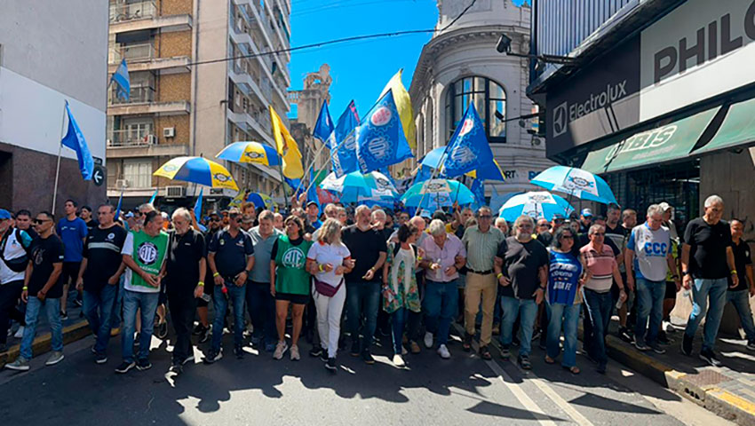 Foto de portada: Cabecera de la marcha contra la reforma laboral en Rosario el 10 de febrero