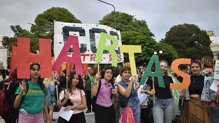 Desde que asumió Milei nuestros derechos y conquistas están bajo amenaza. Este gobierno se ensañó particularmente con un movimiento que luchó y conquistó derechos históricos. Desde el primer momento su política se centró en desjerarquizar las políticas de género. Nos subieron al ring, nos pusieron en el blanco y buscan eliminarnos. Intentaron avanzar contra la figura de femicidio en el Código Penal, contra la ESI, contra el derecho al aborto, contra la Ley de Identidad de Género, contra la Ley Micaela, contra el matrimonio igualitario. Un gobierno que avanza sobre las libertades democráticas persiguiendo y criminalizando a dirigentas políticas y luchadoras populares. Según datos del Monitor de la Represión del IEF-CTA, desde que asumió Milei y hasta el 31 de mayo de este año se reprimieron 73 protestas, con un saldo de 2395 manifestantes heridas, heridos y 277 detenidas y detenidos.